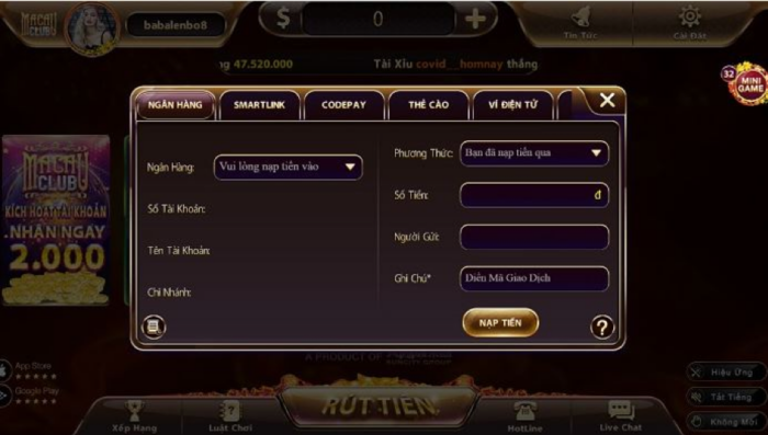 Phương thức nạp tiền vào cổng game Macau Club an toàn