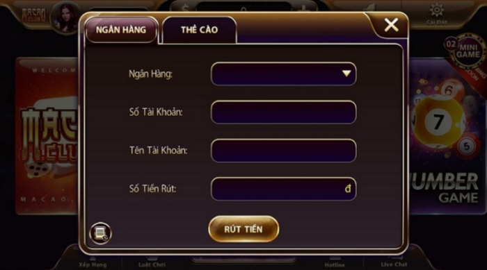 Hướng dẫn rút tiền Macau Club qua thẻ cào